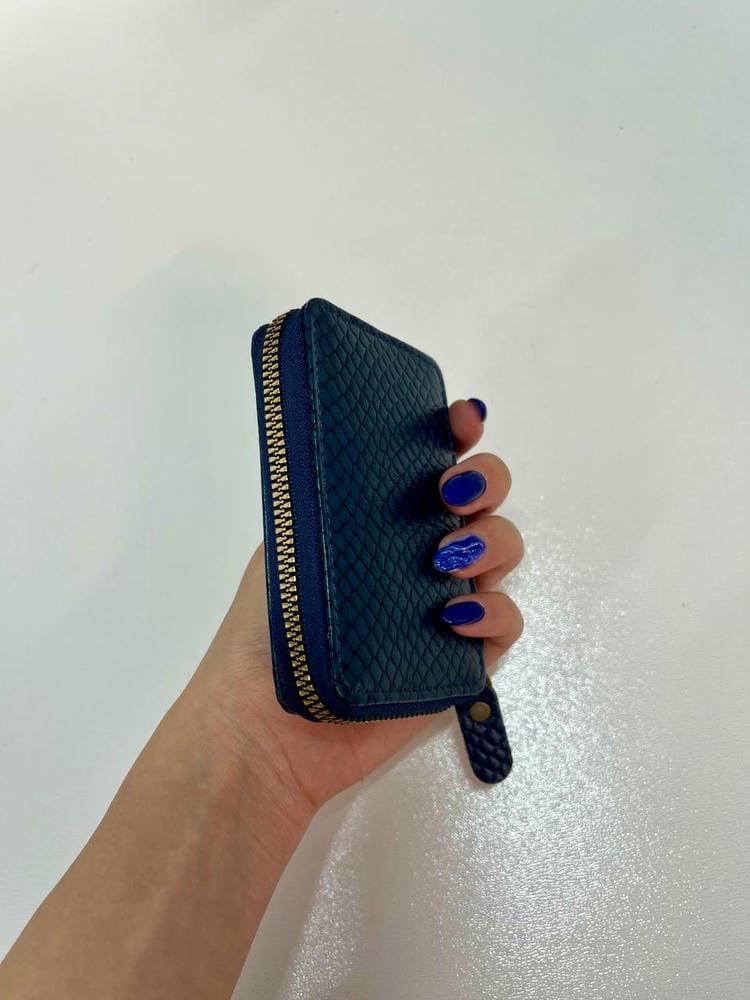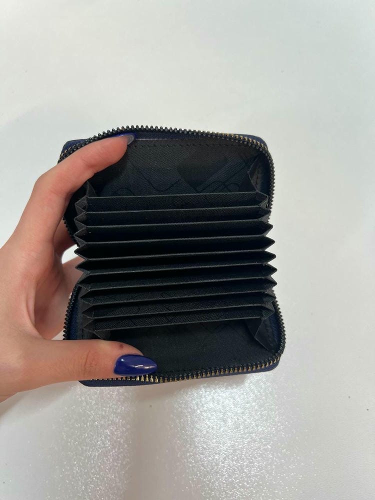 کیف با زیپ باز و بسته میشود و داخل کیف آستر دوزی شده. کیف دارای ۱۱ جای کارت هست که هر قسمت آن یک الی سه کارت جای میگیرد.