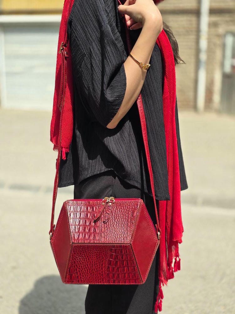 یک کیف چرمی دوشی بسیار شیک و خاص که مناسب استفاده مجلسی هست.