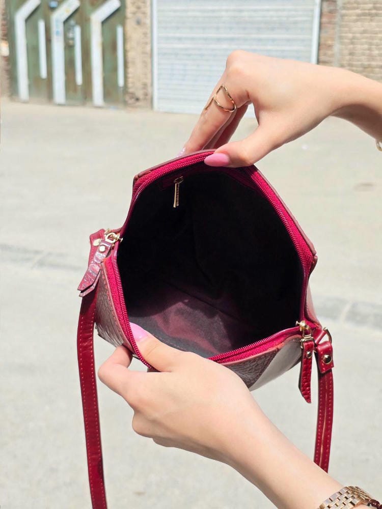 کیف به صورت دوشی قابل استفاده است و داخل کیف آستر دوزی شده ،کیف با زیپ باز و بسته میشه ،داخل کیف آستر دوزی شده و داخل کیف یک جیب زیپ دار در کناره کیف قرار دارد.