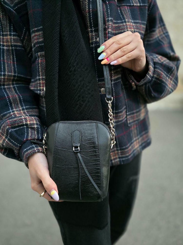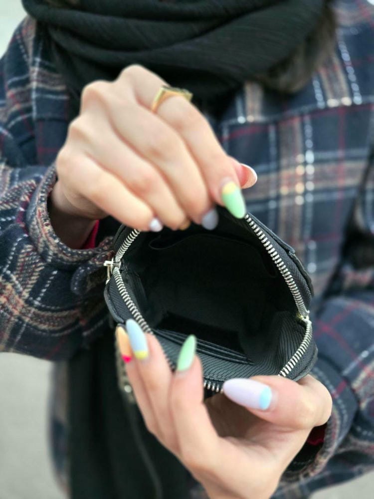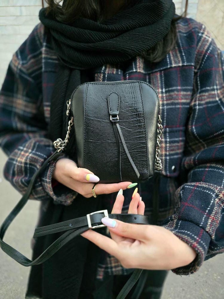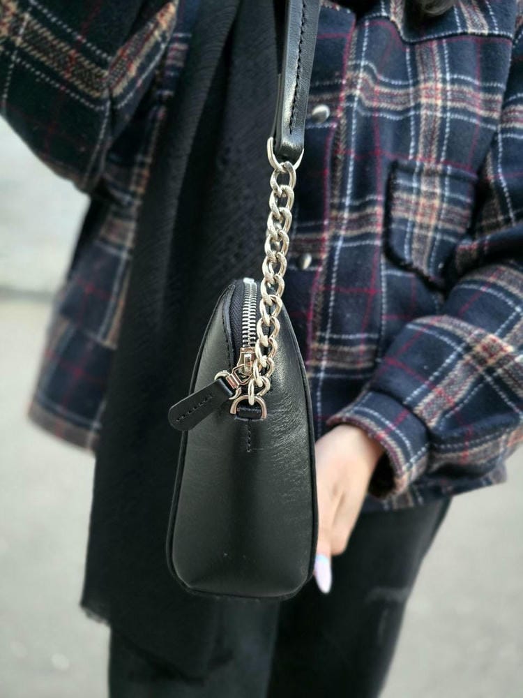 بند دوشی کیف ترکیب زنجیر و چرم طبیعی هست و داخل کیف آستر دوزی شده ،کیف با زیپ باز و بسته میشه ،کیف دو طرفه هست.