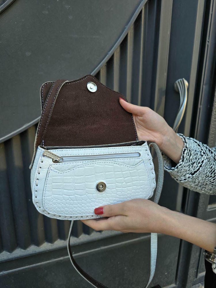 دور دوزی کیف با دست هست و بند چرمی دوشی داره که پشتش آستر خورده ،کیف با درب مگنت دار باز و بسته میشه و داخل کیف هم آستر دوزی شده.