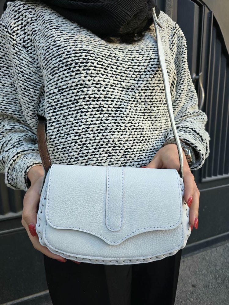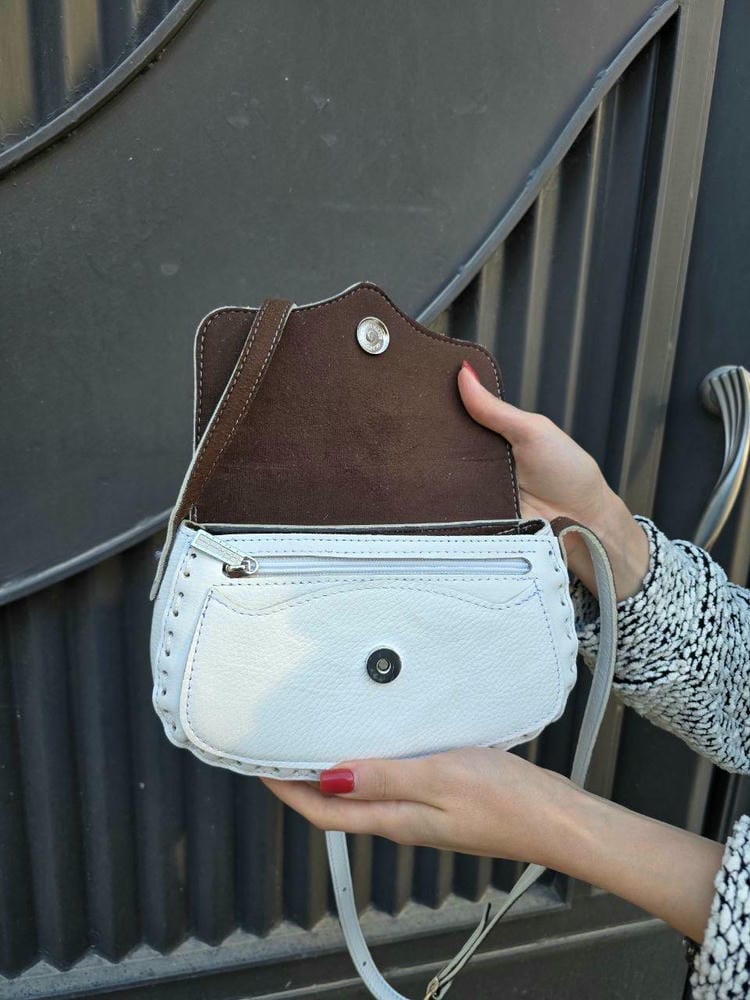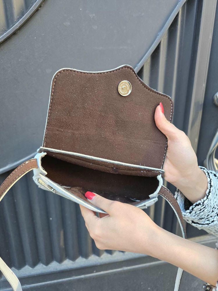 دور دوزی کیف با دست هست و بند چرمی دوشی داره که پشتش آستر خورده ،کیف با درب مگنت دار باز و بسته میشه و داخل کیف هم آستر دوزی شده.