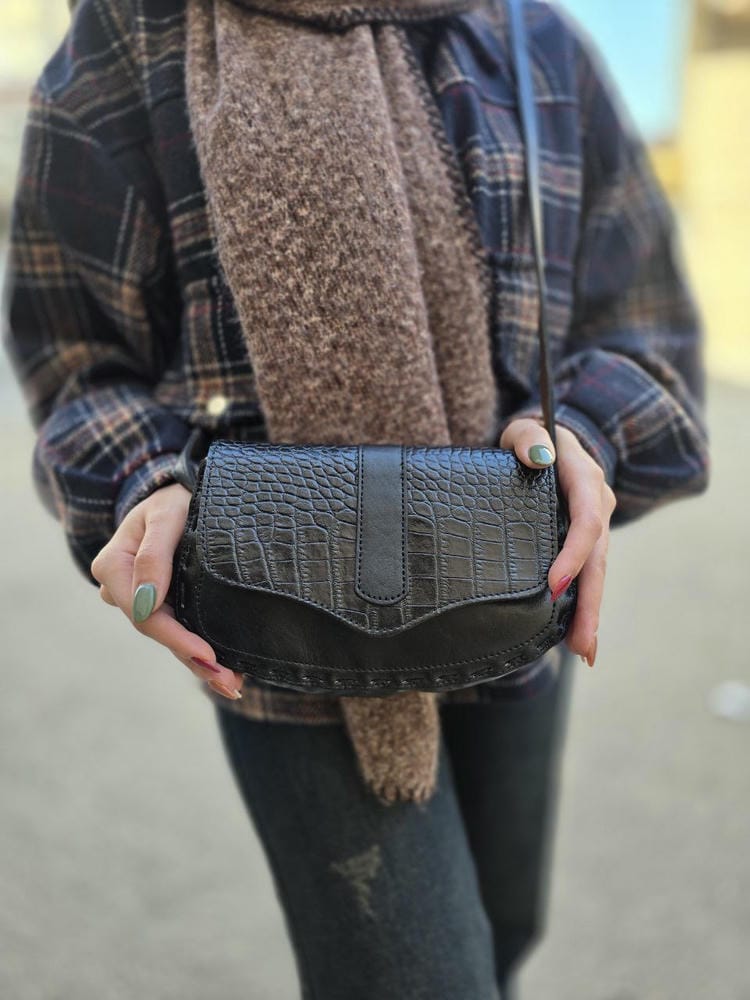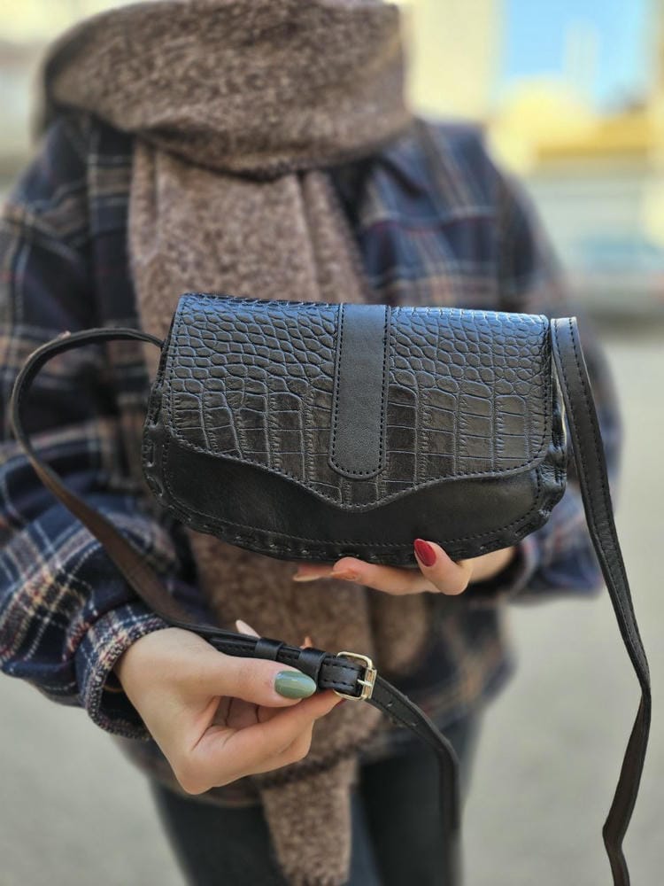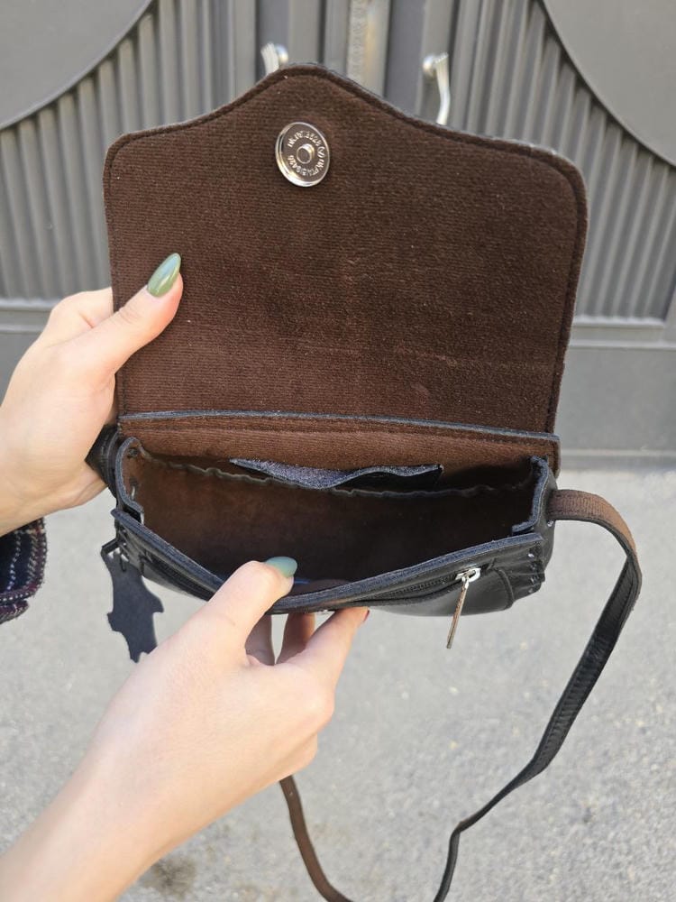 دور دوزی کیف با دست هست و بند چرمی دوشی داره که پشتش آستر خورده ،کیف با درب مگنت دار باز و بسته میشه و داخل کیف هم آستر دوزی شده.