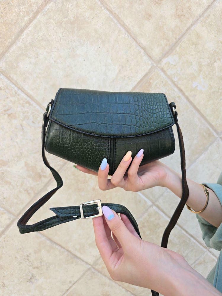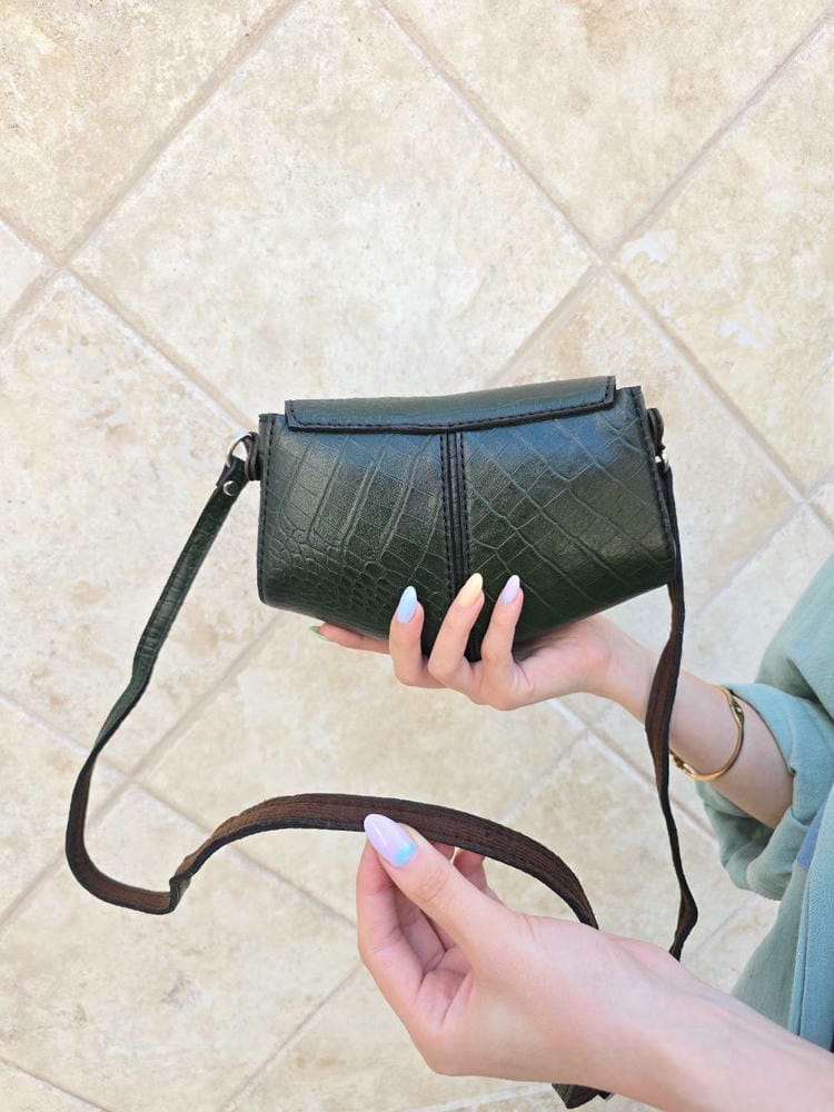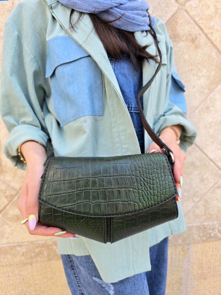 کیف چرم مثلثی سبز ابر و بادی سنگی