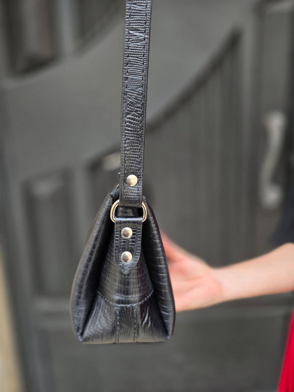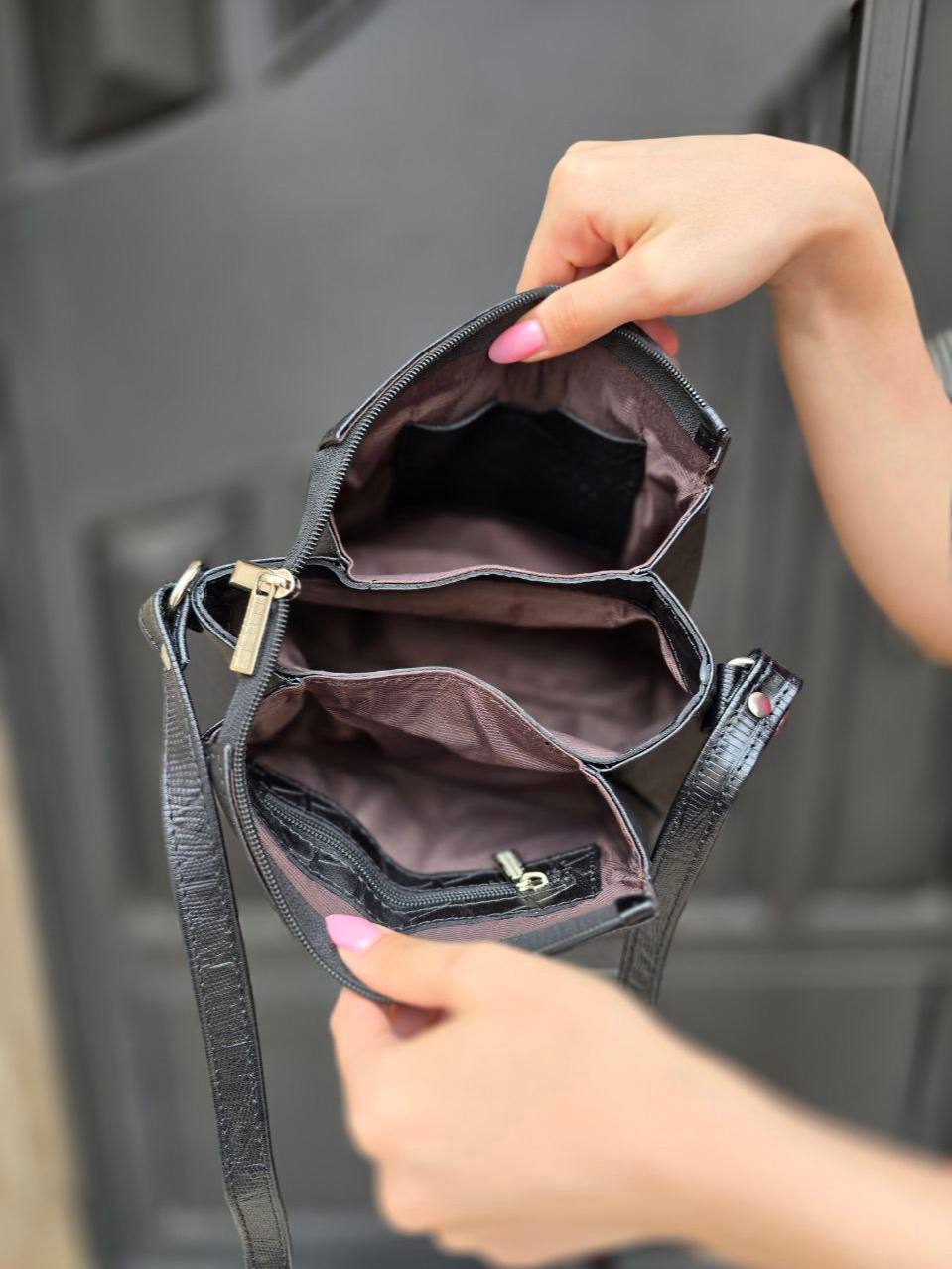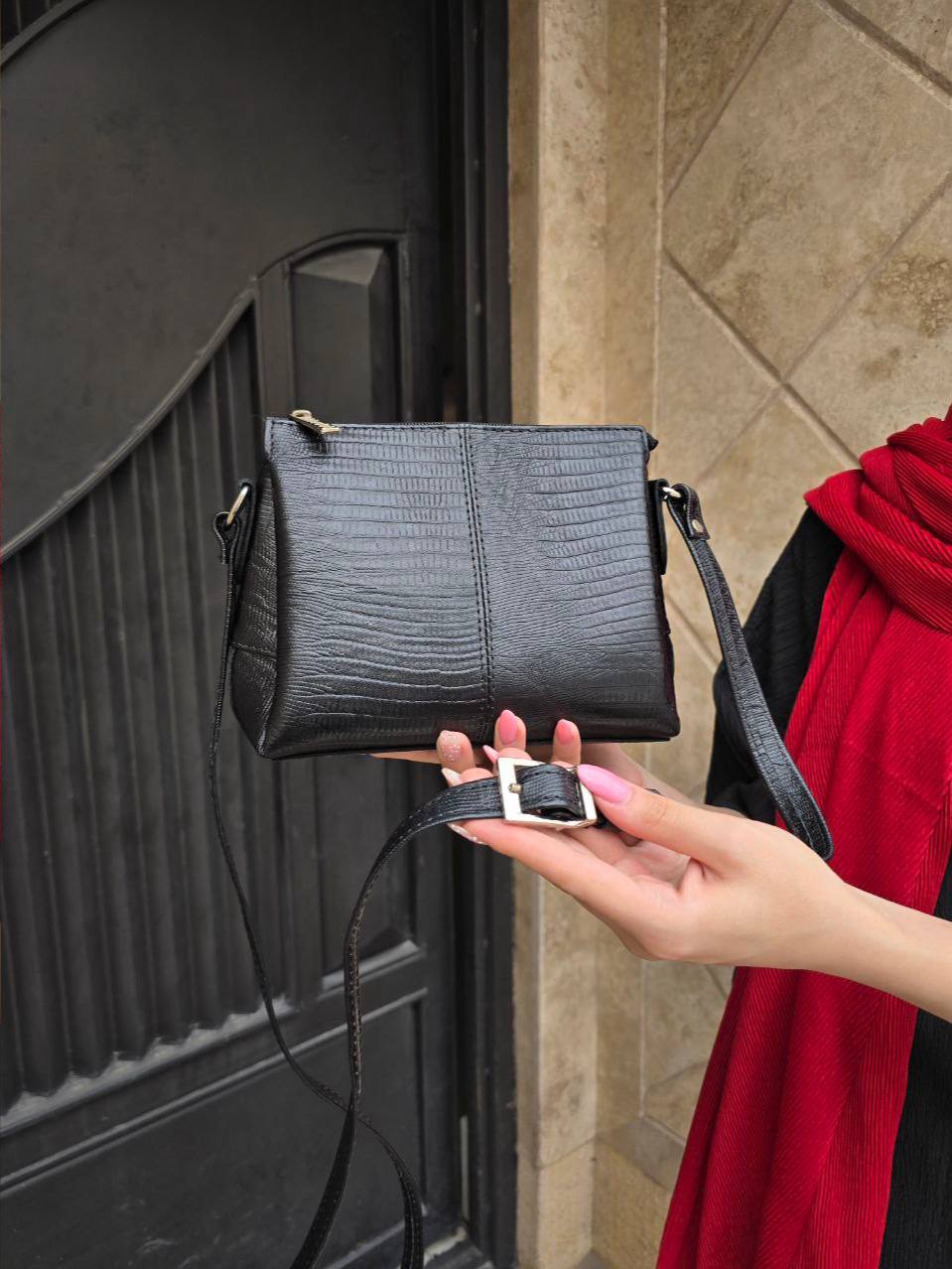 کیف چرم سه طبله کوچک مشکی لیزارد