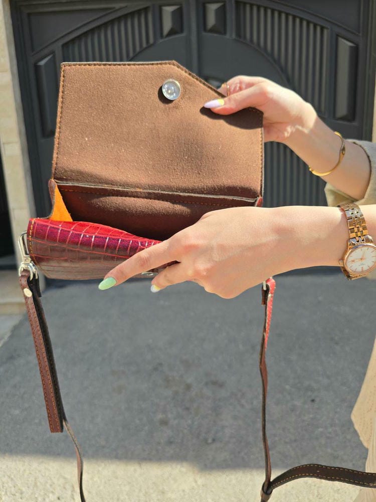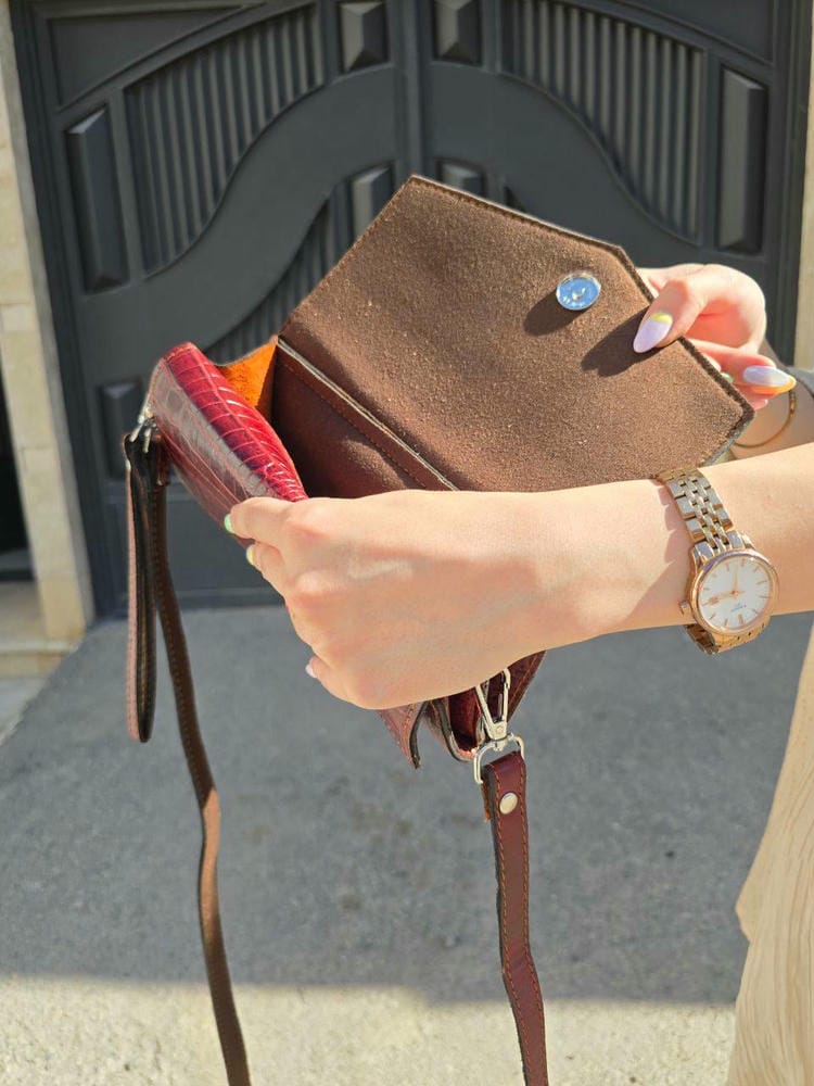 یک کیف دستی دوشی چرمی بسیار شیک و خاص و سبکه که مناسب استفاده روزانه و مجلسی هست . داخل کیف و پشت بند دوشی و دستی کیف آستر دوزی شده و بند دوشی و دستی قابل وصل و جدا شدن هست. کیف با دو درب مگنت دار باز و بسته میشود.پشت کیف و جلوی کیف یک قسمت زیپ دار تعبیه شده. داخل کیف دارای دو قسمت مجزاست و یک جای کارت هم داخلش تعبیه شده .کیف به صورت کتابی مانند هست.