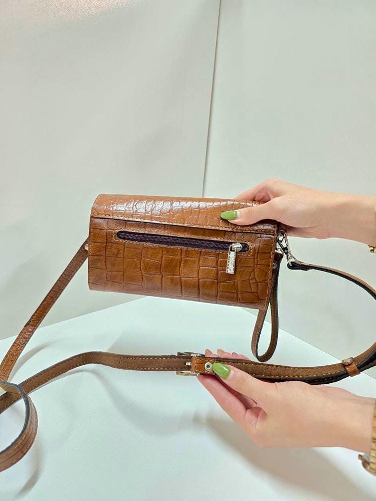 یک کیف دستی دوشی چرمی بسیار شیک و خاص و سبکه که مناسب استفاده روزانه و مجلسی هست . داخل کیف و پشت بند دوشی و دستی کیف آستر دوزی شده و بند دوشی و دستی قابل وصل و جدا شدن هست. کیف با دو درب مگنت دار باز و بسته میشود.پشت کیف و جلوی کیف یک قسمت زیپ دار تعبیه شده. داخل کیف دارای دو قسمت مجزاست و یک جای کارت هم داخلش تعبیه شده .کیف به صورت کتابی مانند هست.
