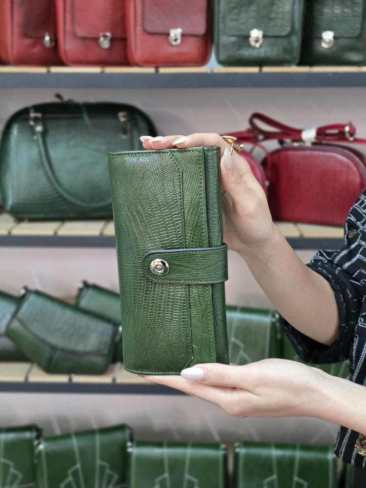 یک کیف پول چرمی بسیار شیک و جادار که مناسب خانم های خاص پسند هست.