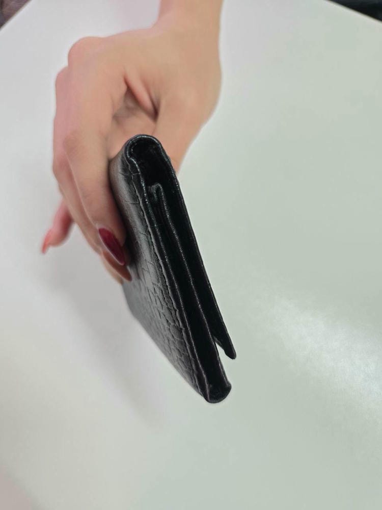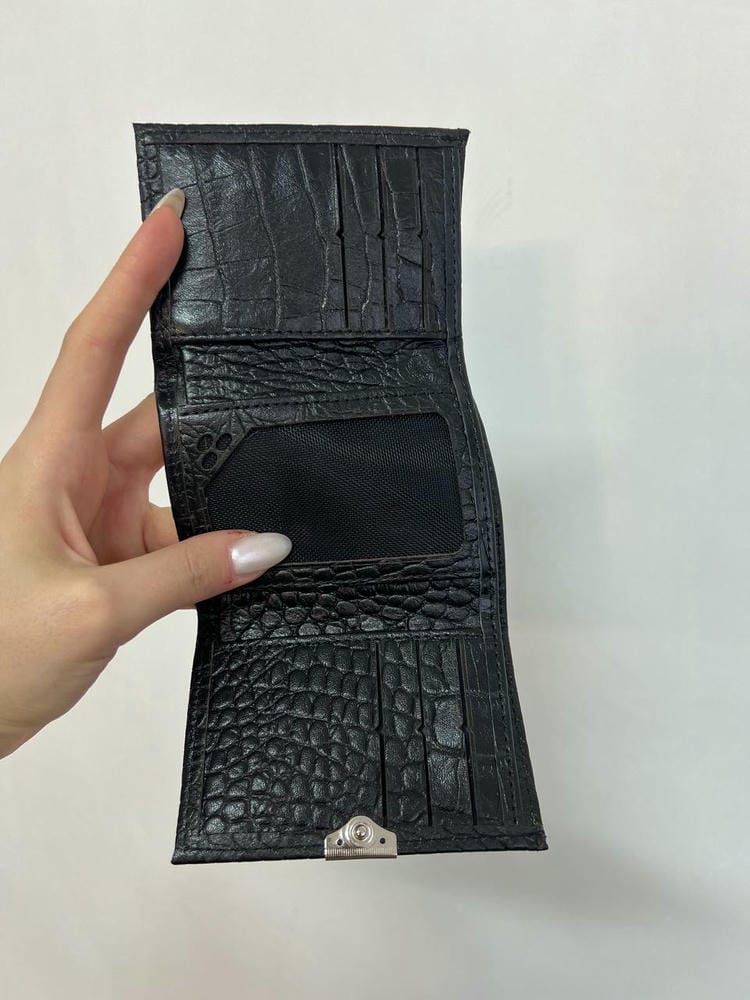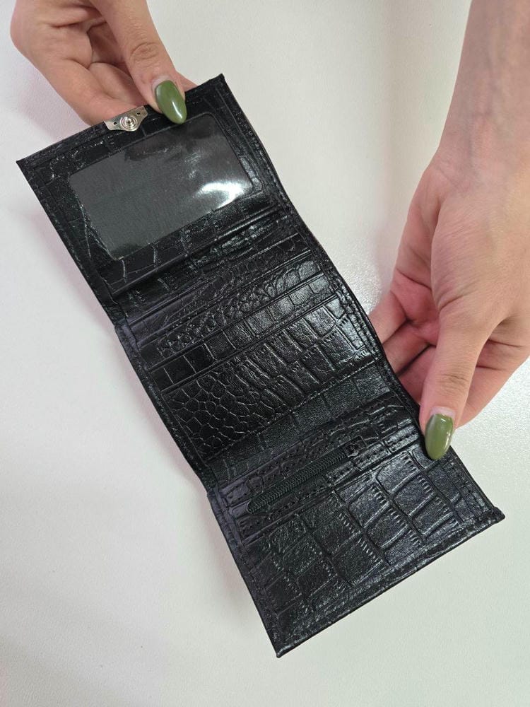 کیف پول چرم دکمه لبه دار مشکی سنگی