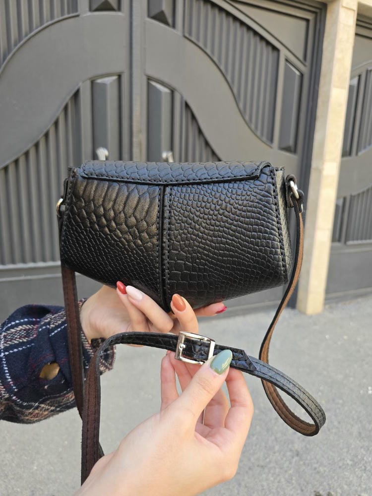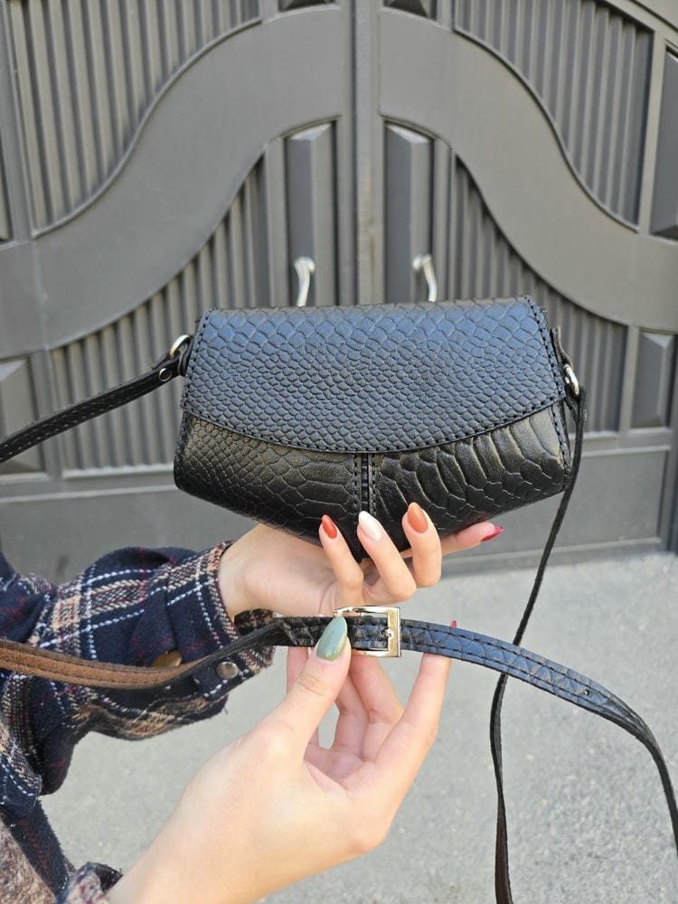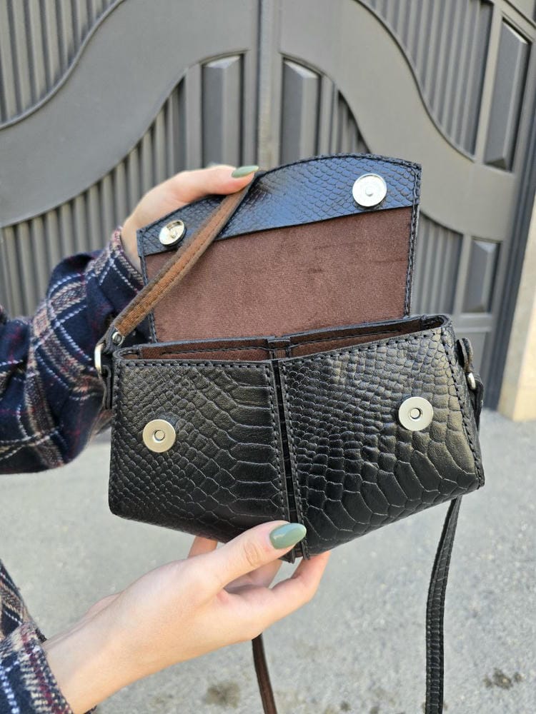 کیف چرم مثلثی مشکی پولک ماهی