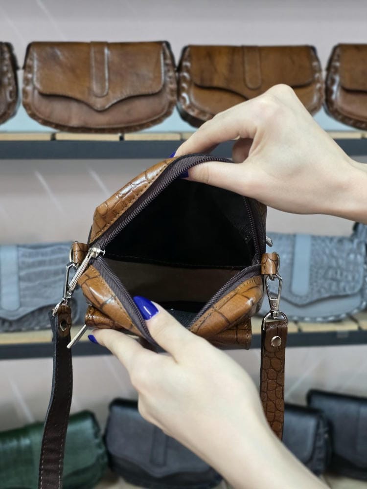 داخل کیف و پشت بند دوشی کیف آستر دوزی شده .جلوی کیف یک جیب درب دار تعبیه شده . و پشت کیف هم یکجیب زیپ دار تعبیه شده.