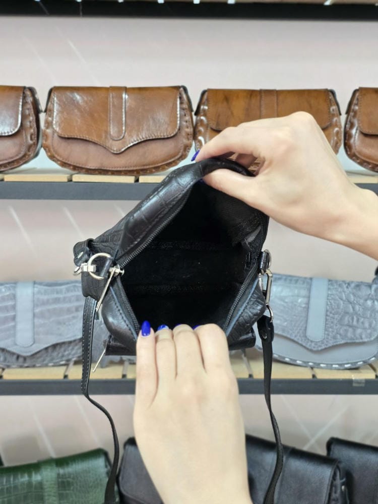 داخل کیف و پشت بند دوشی کیف آستر دوزی شده .جلوی کیف یک‌ جیب درب دار تعبیه شده . و پشت کیف هم یک‌جیب زیپ دار تعبیه شده.