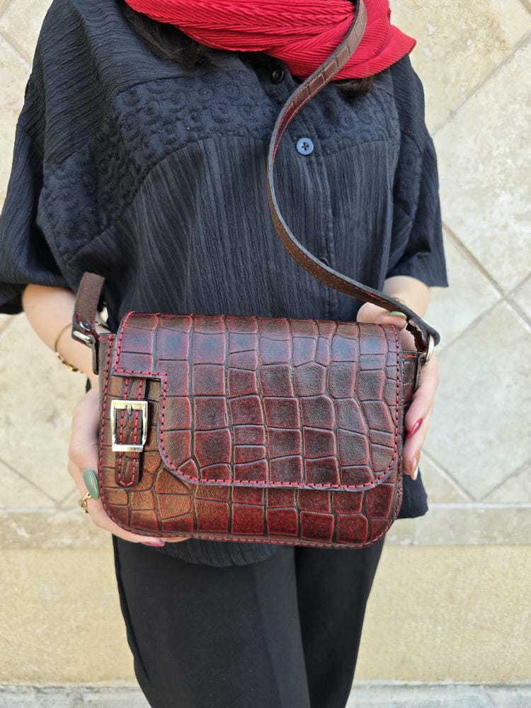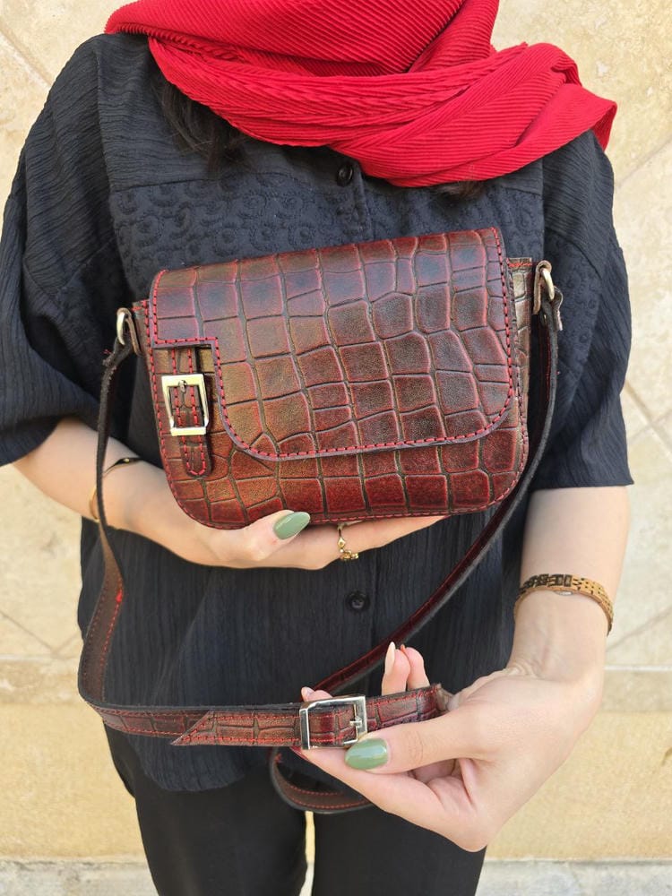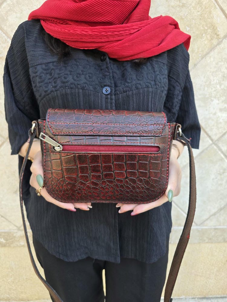 کیف چرم بغل سگک زرشکی تمام سنگی