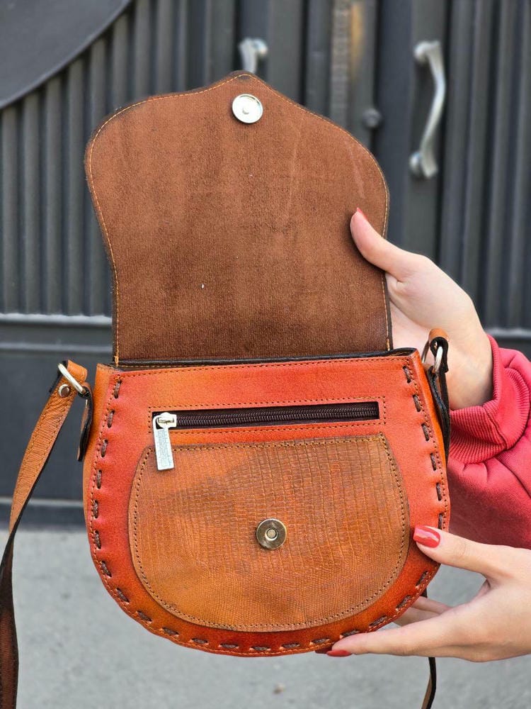 کیف به صورت دوشی قابل استفاده است و پشت بند دوشی و داخل کیف آستر دوزی شده ،کیف با درب  مگنت دار باز و بسته میشه ،دور دوزی کیف با دست هست.