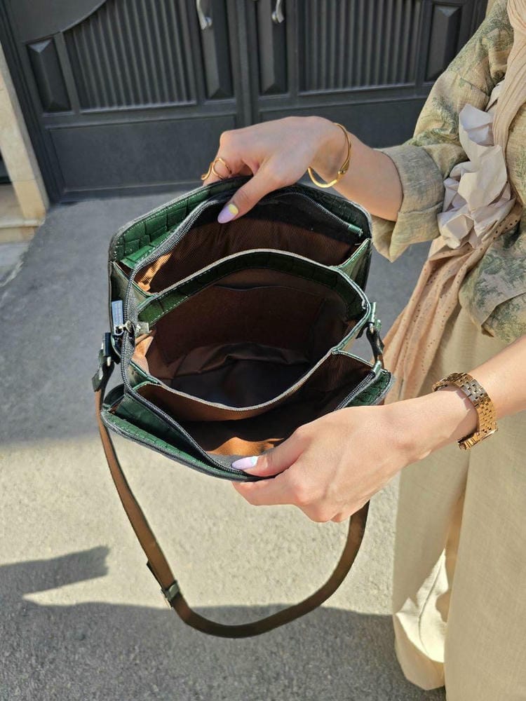 یک کیف دوشی چرمی بسیار شیک و کاربردی و سبک که بسیار جاداره و مناسب استفاده روزانه و مناسب خانم های شاغل هست.