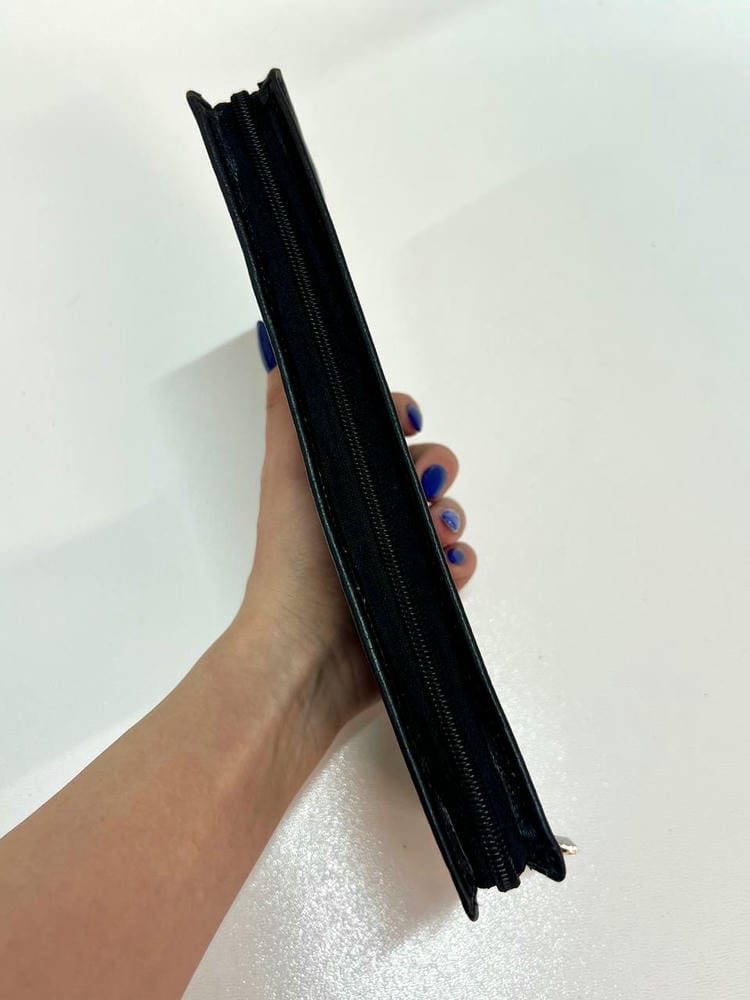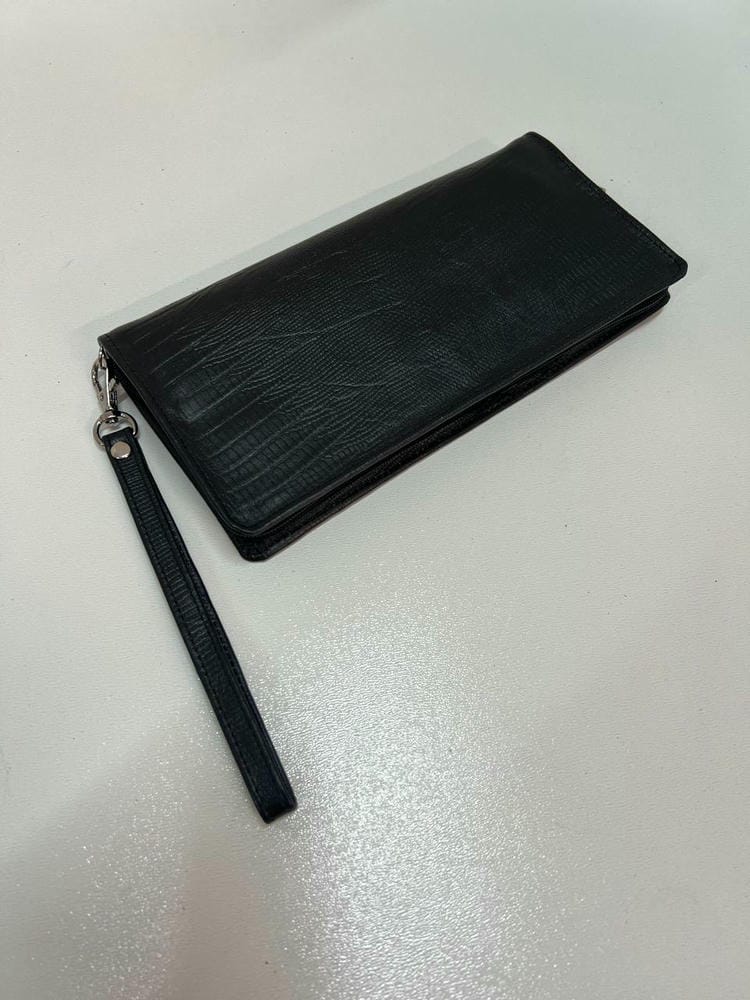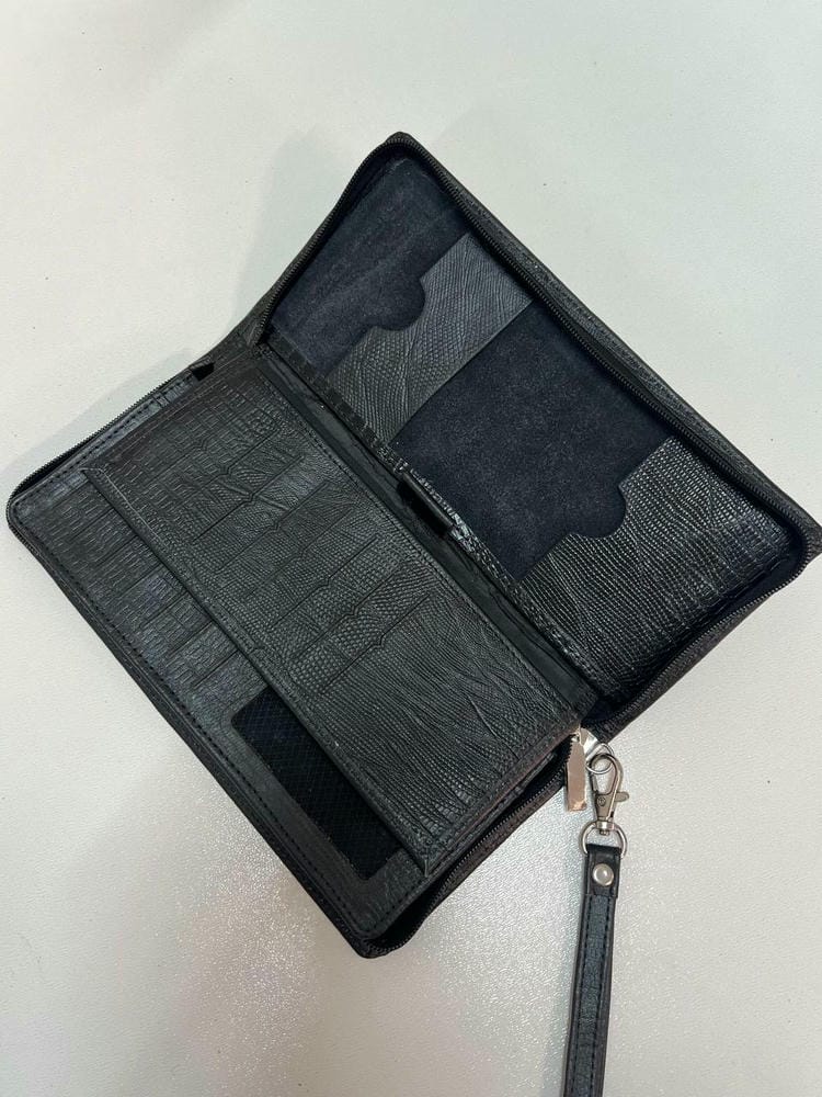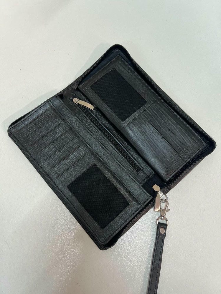 کیف با زیپ باز و بسته میشه،داخل کیف آستر دوزی شده و یک جای مجزا چک،یک جای قلم تعبیه شده.