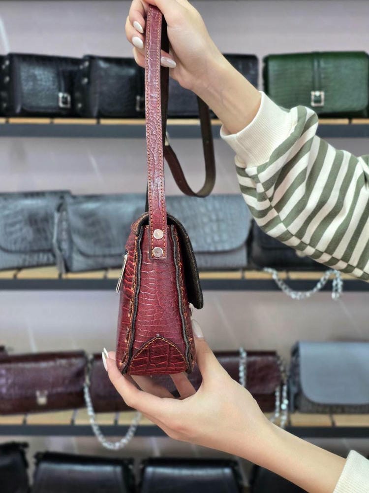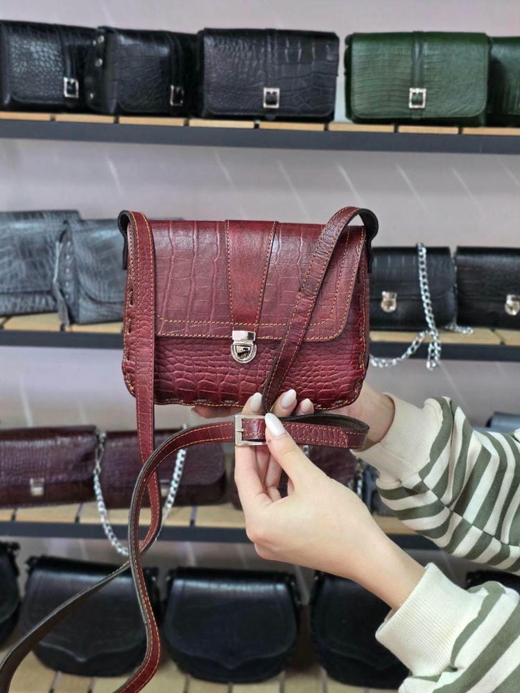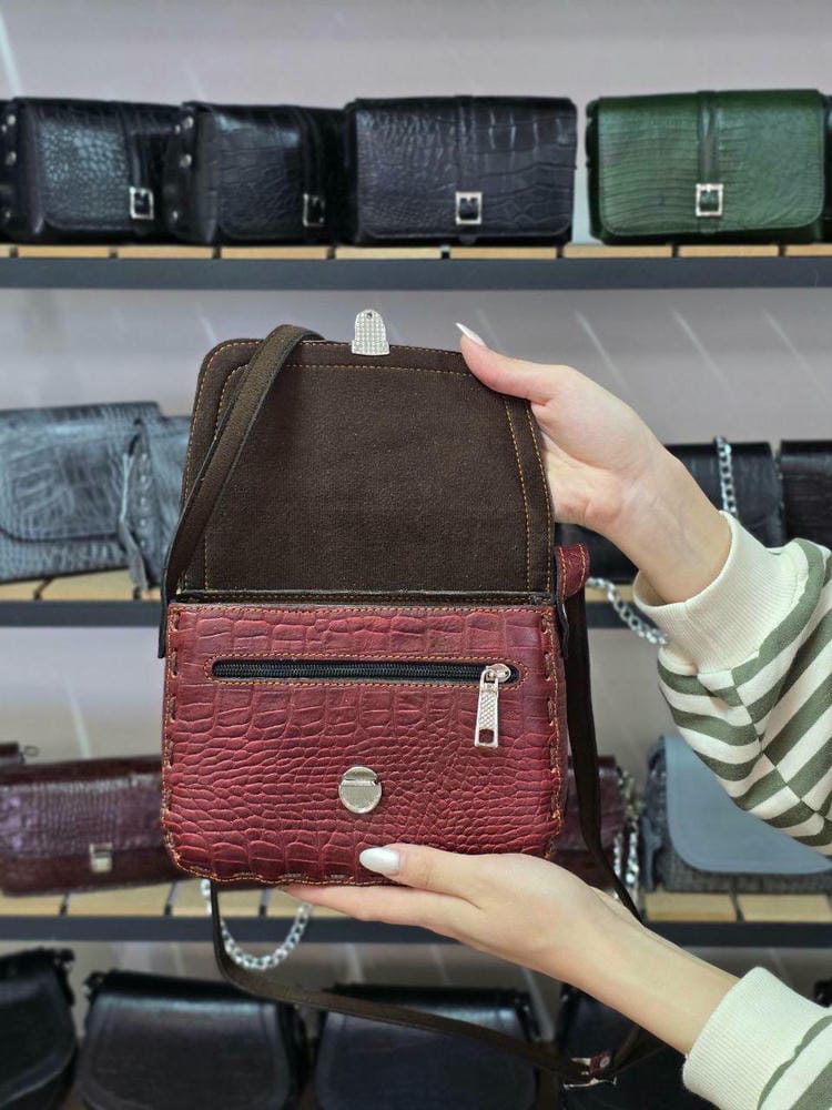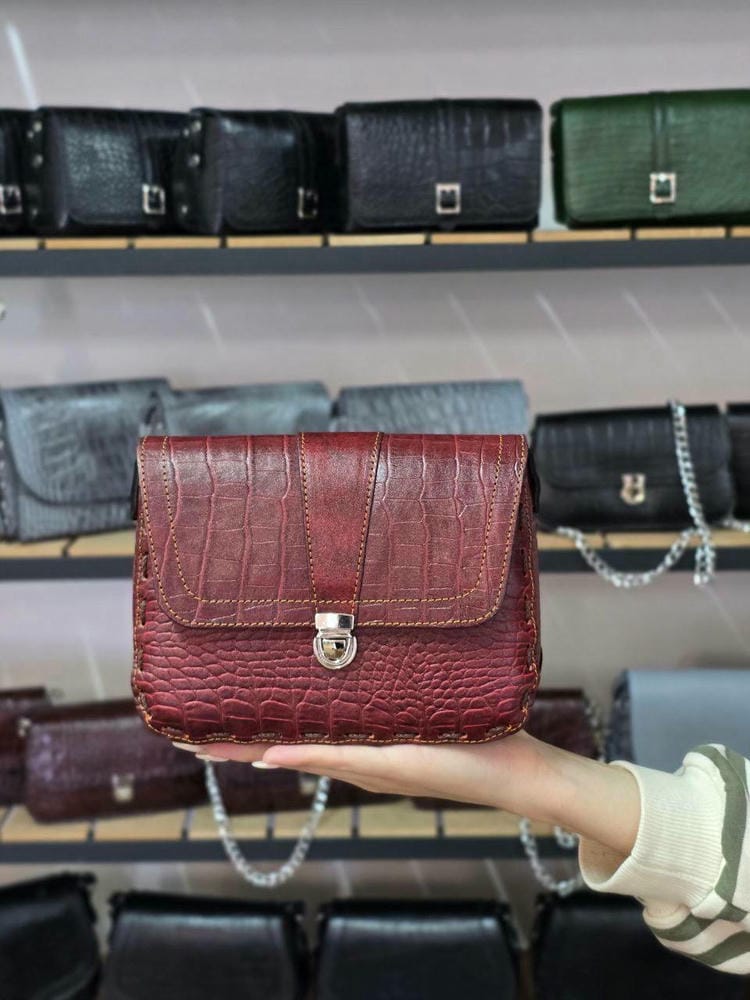 دور دوزی کیف با دست هست و بند چرمی دوشی داره که پشتش آستر خورده ،کیف با درب قفل دار باز و بسته میشه و داخل کیف هم آستر دوزی شده.