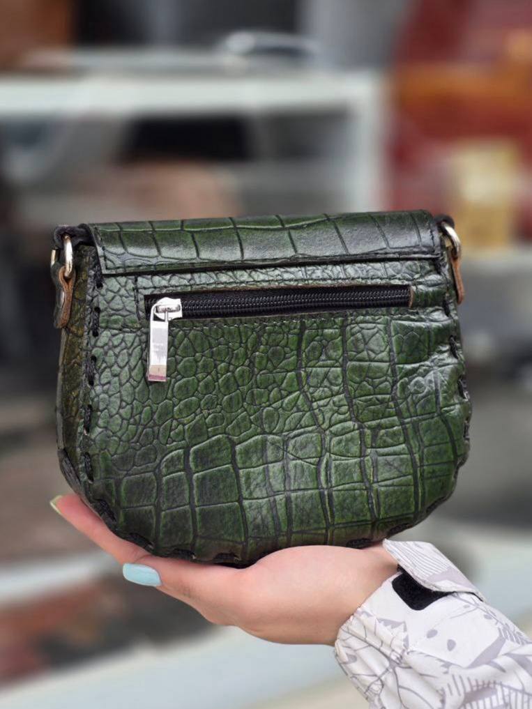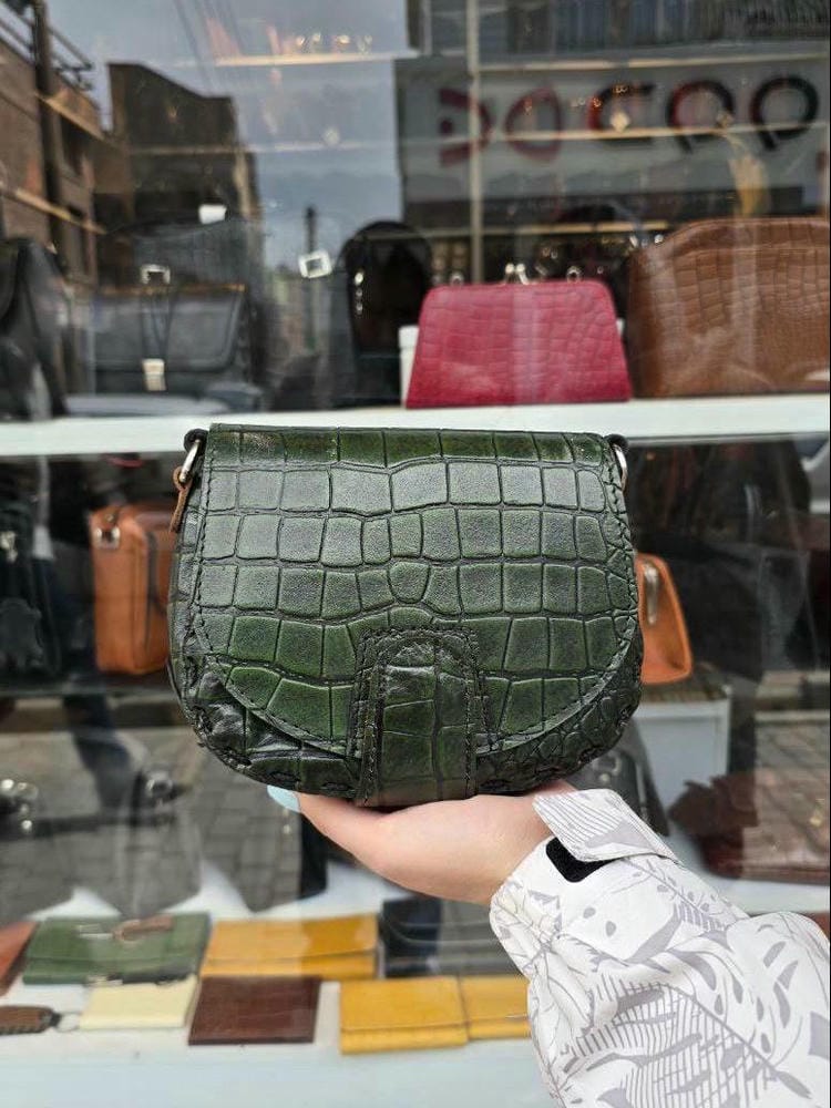 کیف چرم فنجول سبز ابروبادی سنگی