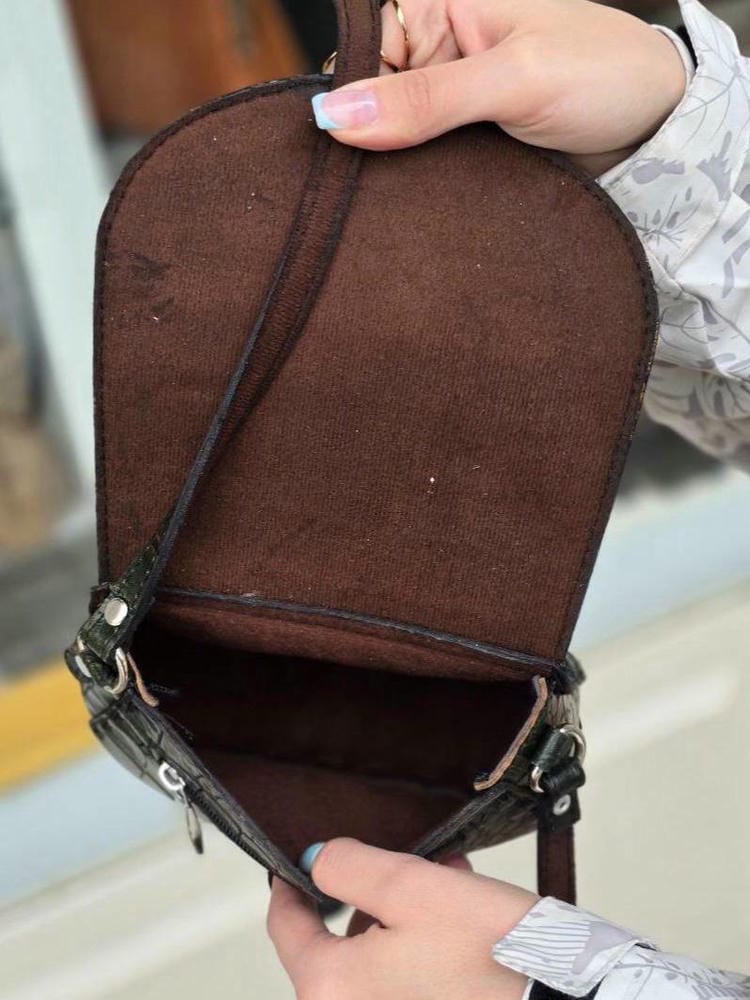 دور دوزی کیف با دست هست و بند چرمی دوشی داره که پشتش آستر خورده ،کیف با درب مگنت دار باز و بسته میشه و داخل کیف هم آستر دوزی شده.
