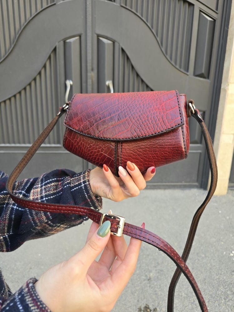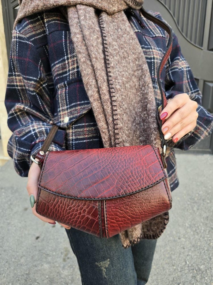 کیف چرم مثلثی زرشکی آلبالویی سنگی
