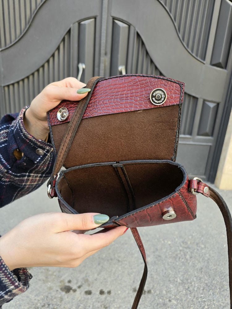 یک کیف چرم اصل بسیار شیک و جمع و جور و سبک که دست دوزه و مناسب استفاده روزانه هست.بند چرمی دوشی داره که پشتش آستر خورده ،کیف با درب دکمه خورد باز و بسته میشه و داخلشم آستر دوزی شده.