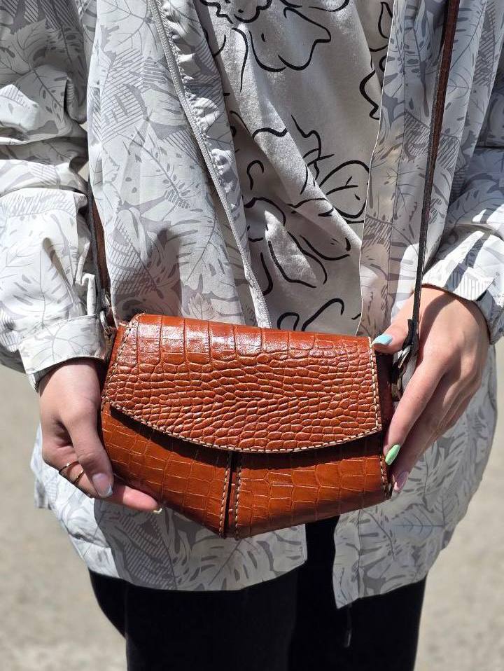یک کیف چرم اصل بسیار شیک و جمع و جور و سبک که دست دوزه و مناسب استفاده روزانه هست.بند چرمی دوشی داره که پشتش آستر خورده ،کیف با درب دکمه خورد باز و بسته میشه و داخلشم آستر دوزی شده.