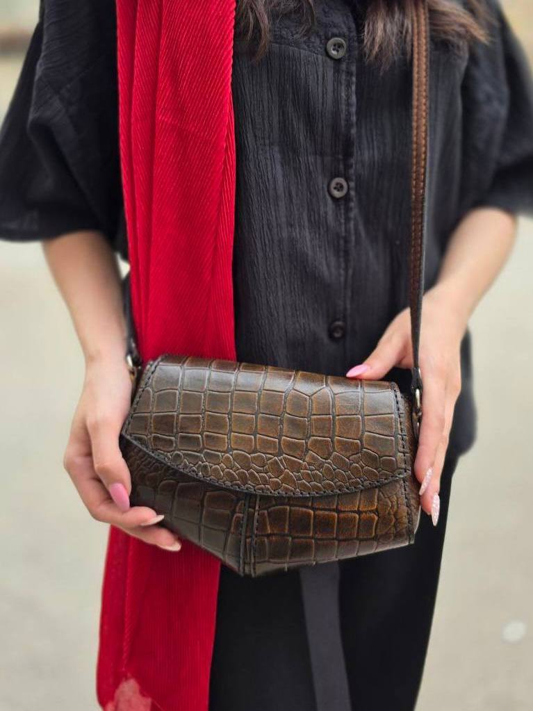 یک کیف چرم اصل بسیار شیک و جمع و جور و سبک که دست دوزه و مناسب استفاده روزانه هست.بند چرمی دوشی داره که پشتش آستر خورده ،کیف با درب دکمه خورد باز و بسته میشه و داخلشم آستر دوزی شده.