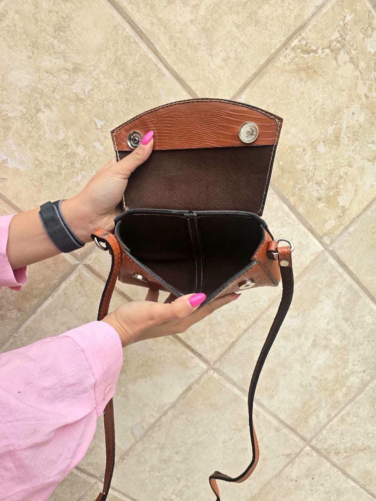 یک کیف چرم اصل بسیار شیک و جمع و جور و سبک که دست دوزه و مناسب استفاده روزانه هست.بند چرمی دوشی داره که پشتش آستر خورده ،کیف با درب دکمه خورد باز و بسته میشه و داخلشم آستر دوزی شده.