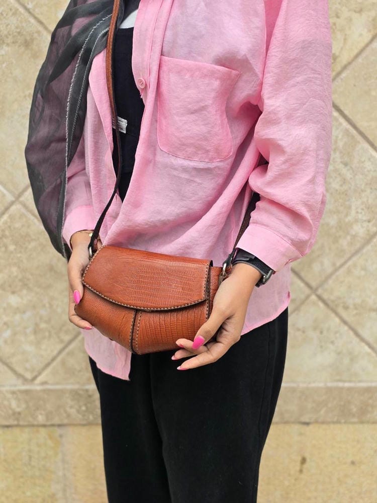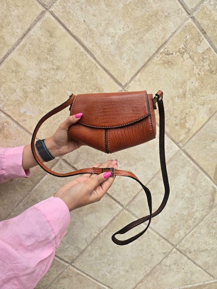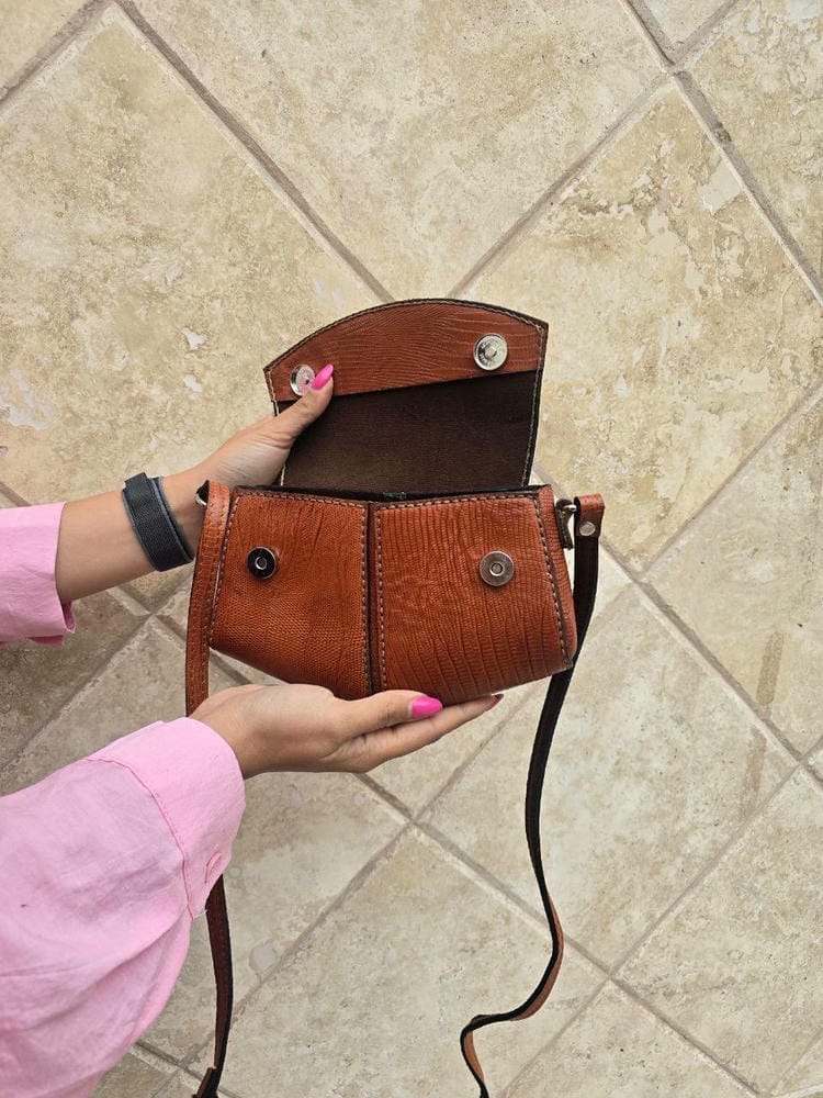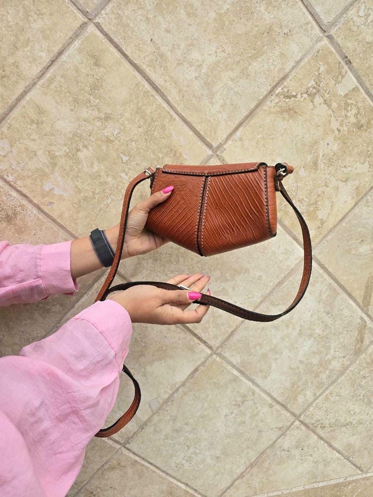 کیف چرم مثلثی عسلی نارنجی لیزارد