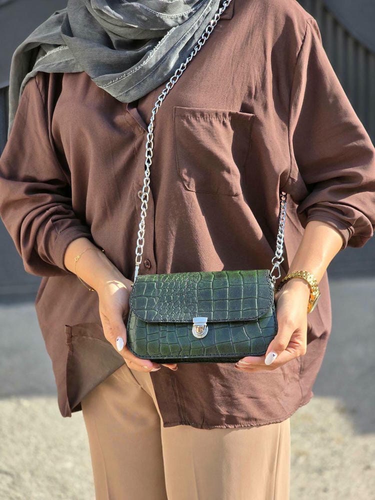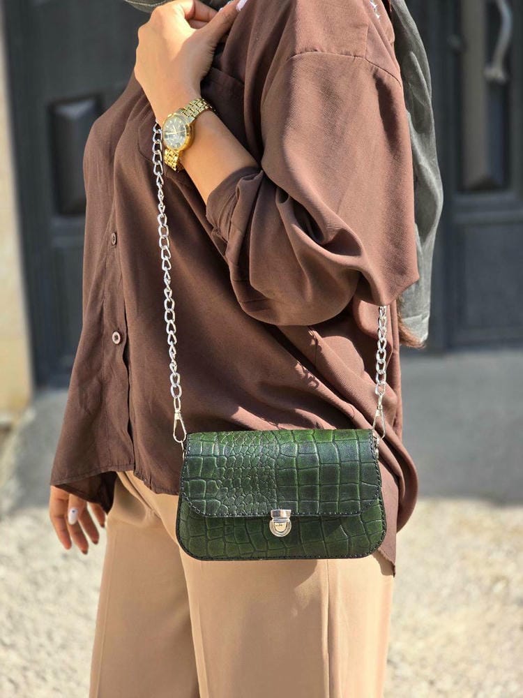 یک کیف چرمی دوشی بسیار شیک و خاص که مناسب استفاده مجلسی هست.