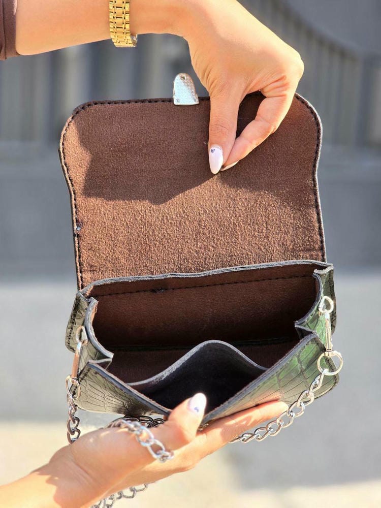 داخل کیف جای کارت تعبیه شده و بند دوشی کیف زنجیری هست.
