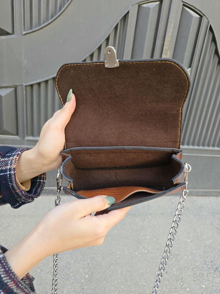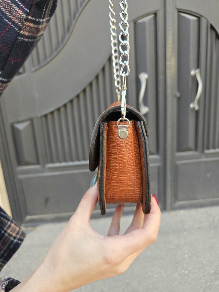 داخل کیف جای کارت تعبیه شده و بند دوشی کیف زنجیری هست.