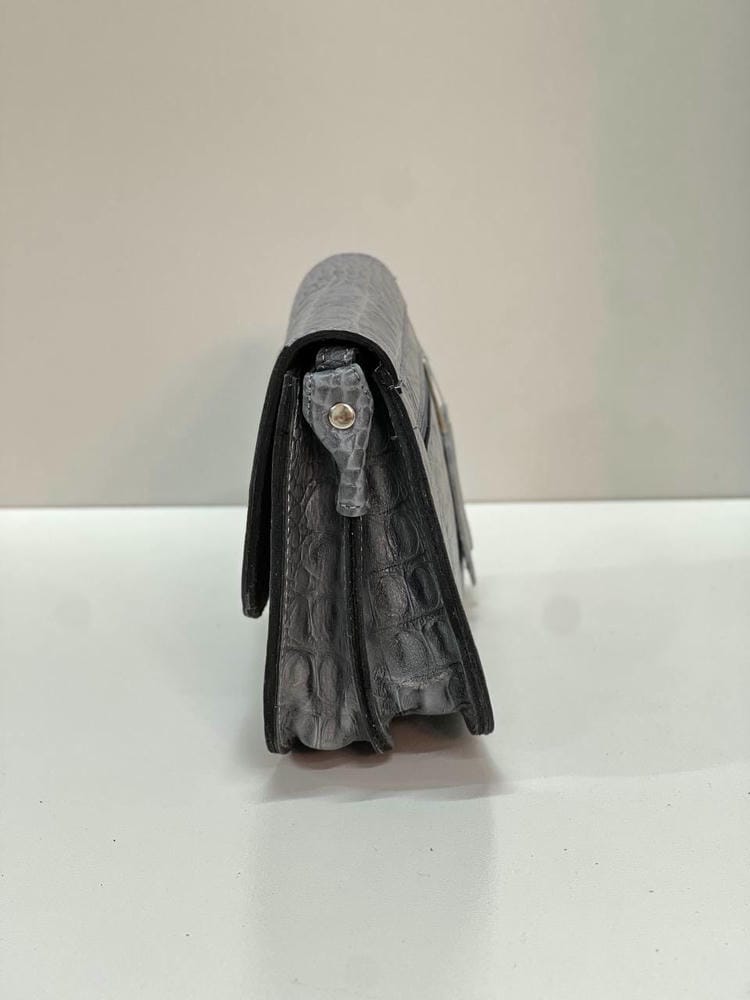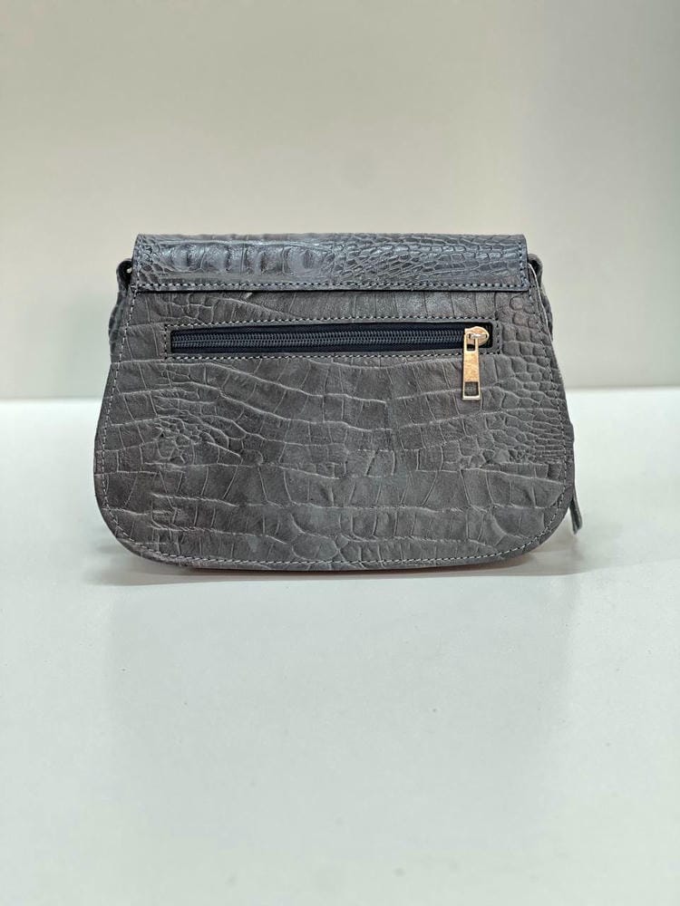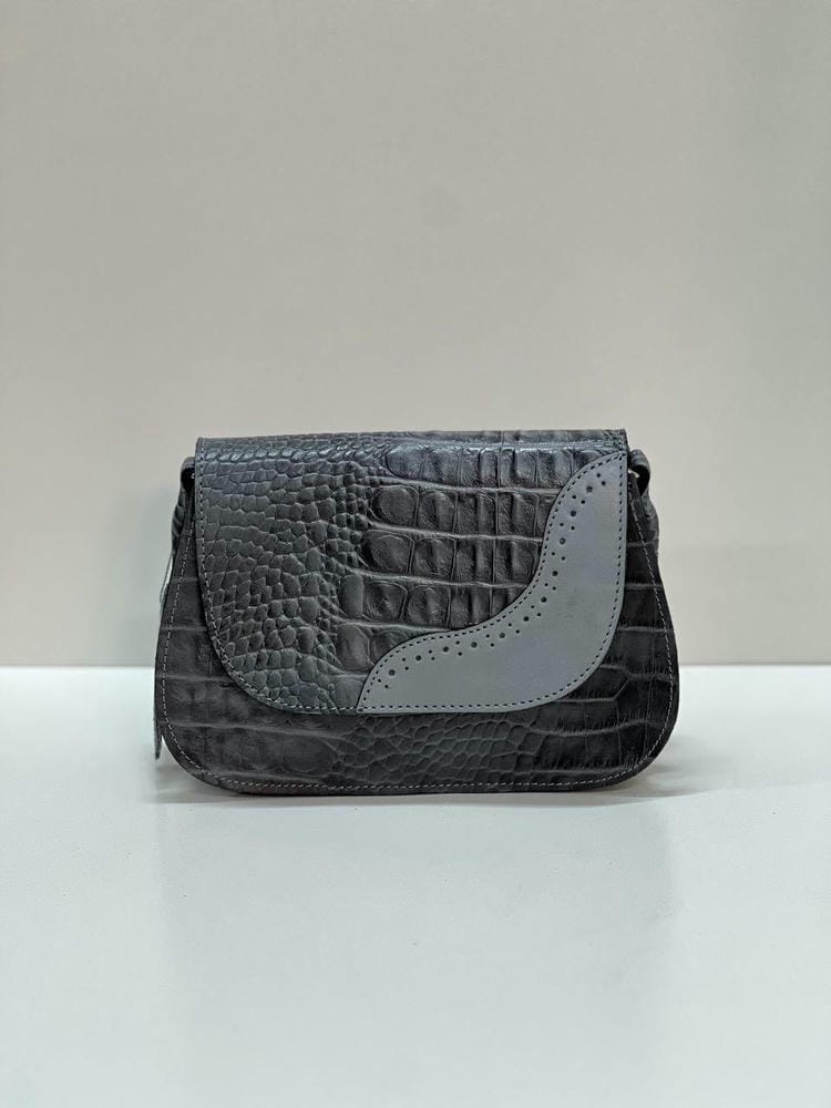 کیف چرم پروانه دو طبله طوسی تمام سنگی