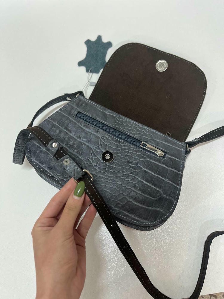 کیف به صورت دوشی قابل استفاده است و پشت بند دوشی و داخل کیف آستر دوزی شده ،کیف با درب دکمه خورد باز و بسته میشه ،داخل کیف دو طبله هستش که با یک جیب زیپی در وسط کیف طبله ها از هم جدا شدن. پشت کیف  و جلوی کیف هم دارای یک جیب زیپ دار هست.