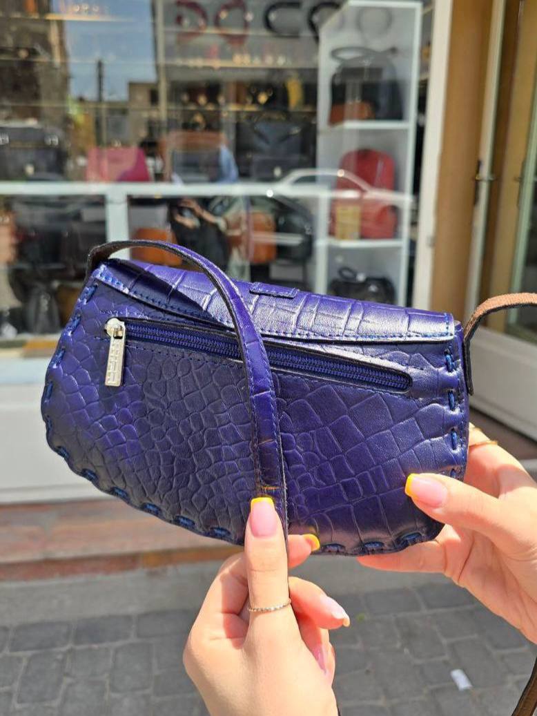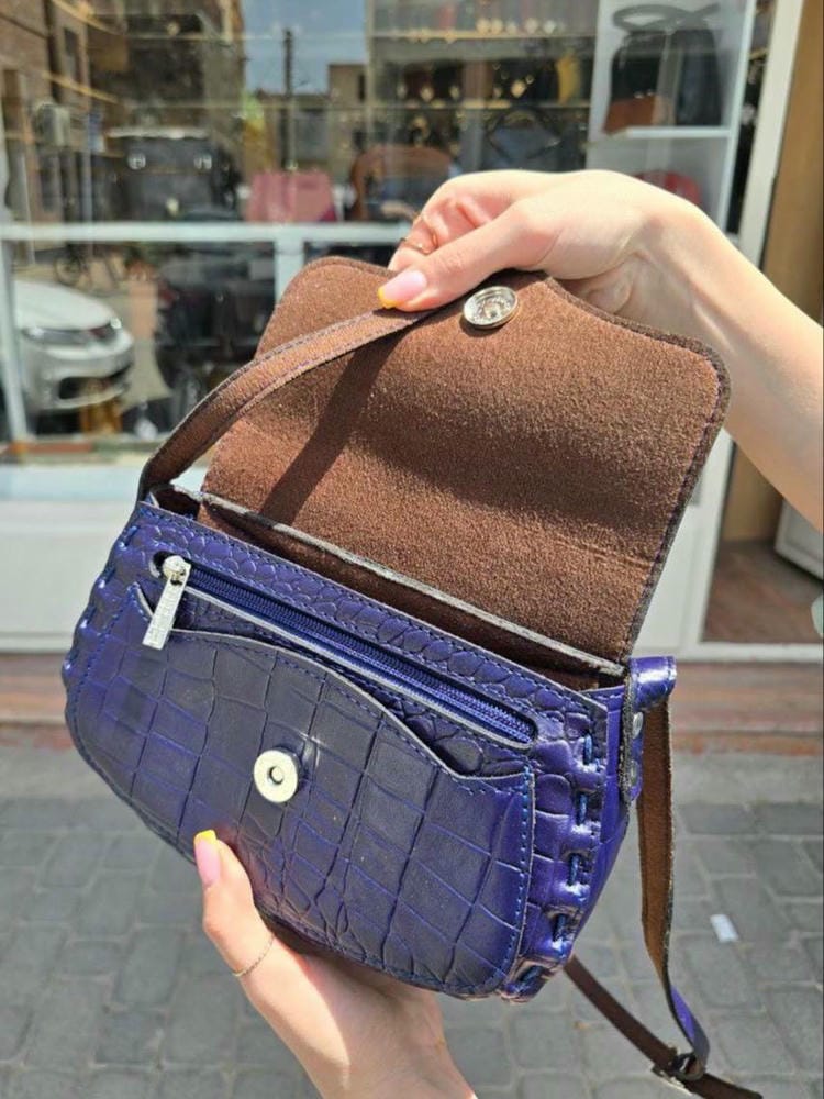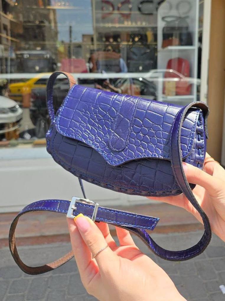 دور دوزی کیف با دست هست و بند چرمی دوشی داره که پشتش آستر خورده ،کیف با درب مگنت دار باز و بسته میشه و داخل کیف هم آستر دوزی شده.