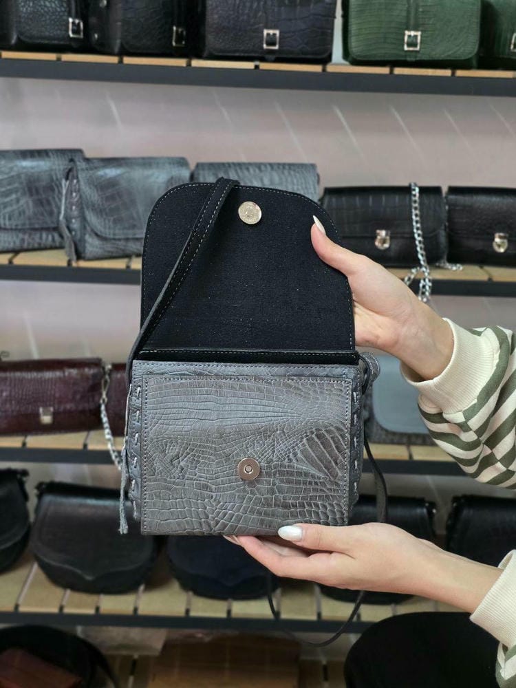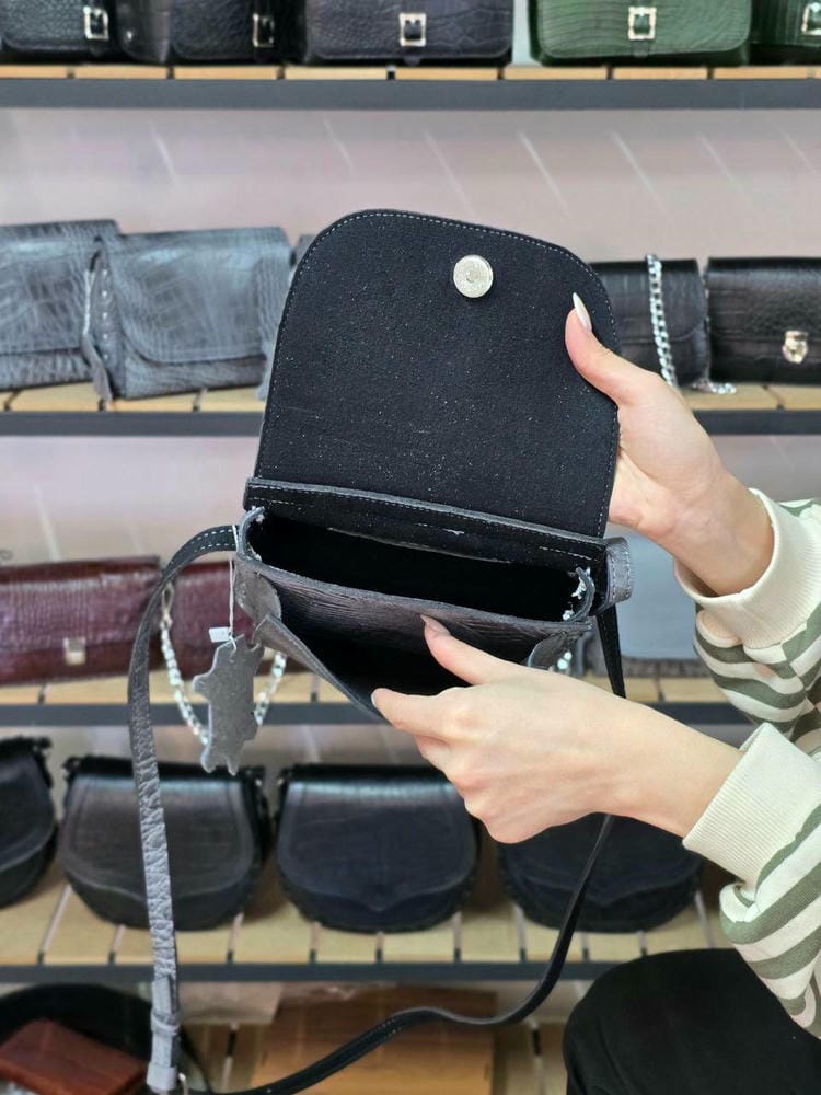 بند دوشی چرمی داره که پشتش آستر خورده ،کیف با درب مگنت دار باز و بسته میشه و داخل کیف هم آستر دوزی شده.
