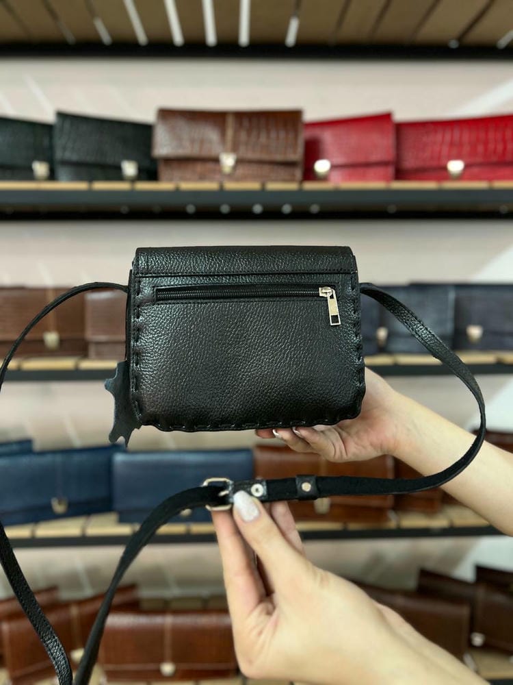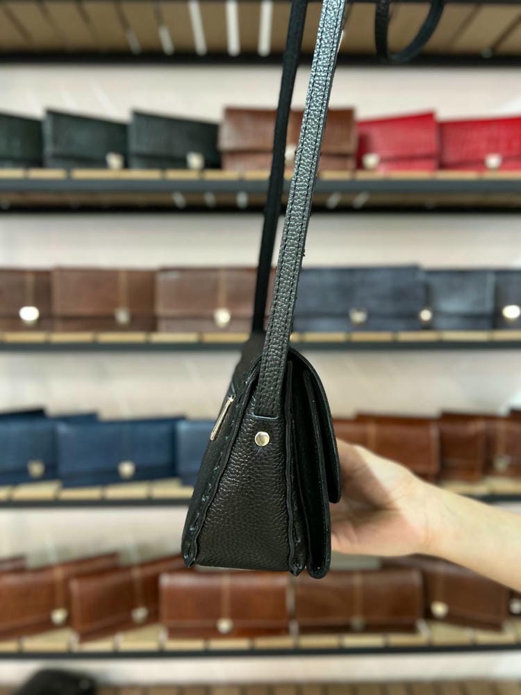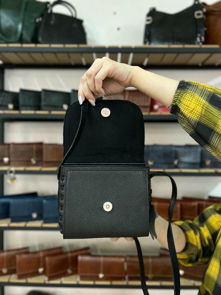 بند دوشی چرمی داره که پشتش آستر خورده ،کیف با درب مگنت دار باز و بسته میشه و داخل کیف هم آستر دوزی شده.